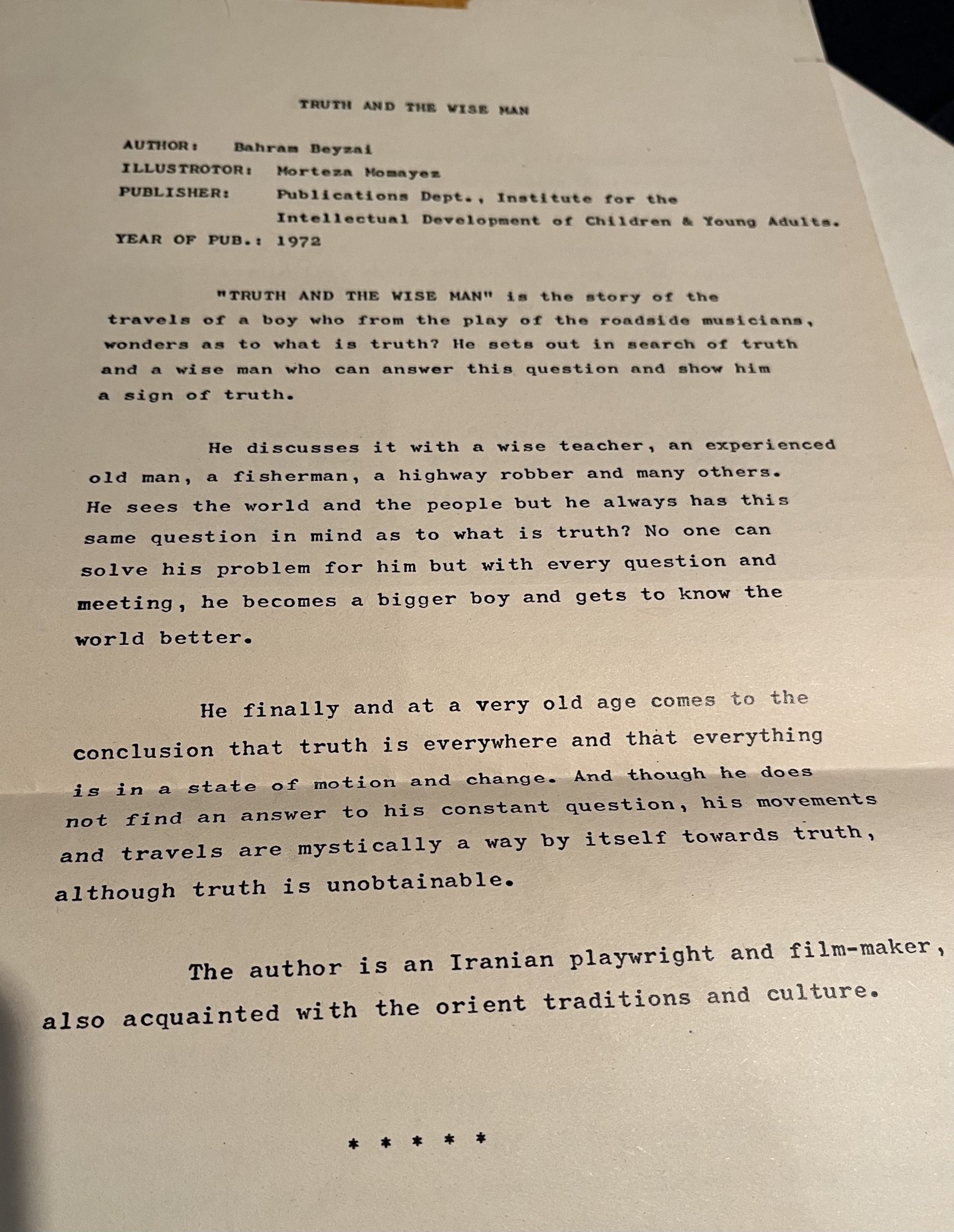先日、出逢ったイランの絵本「Truth and the wise man」by Bahram Beyzaiのまとめの一節が気になったので、訳してみました。