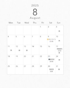 8月スケジュール(セッション&クラス)